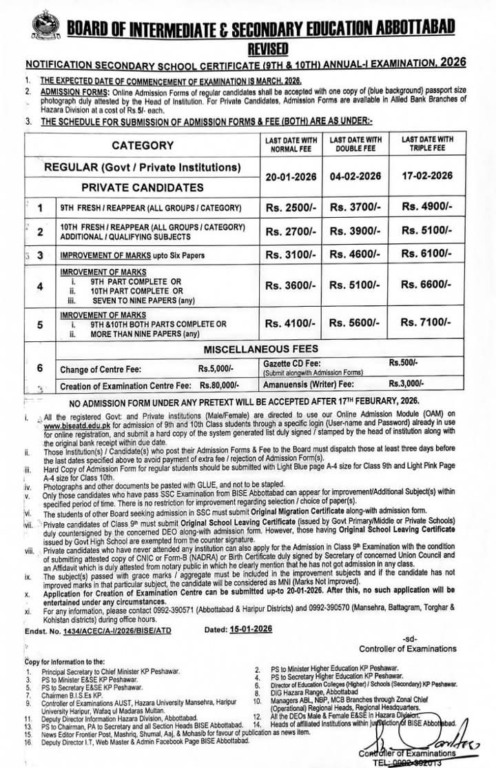REVISED NOTIFICATION SSC ANNUAL-I EXAMINATION 2026