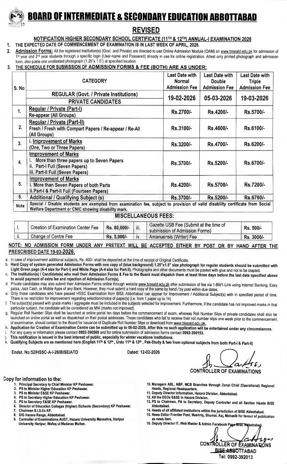 REVISED NOTIFICATION HSSC A-I 2026